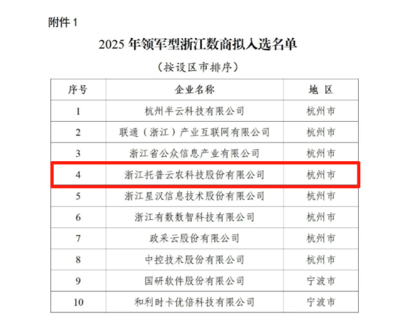 近日,浙江省经济和信息化厅公布《关于2025年浙江数商入选名单(领军型、成长型)》,浙江草莓视频在线免费科技股份有限公司(股票简称:草莓视频在线免费,股票代码:301556)凭借在智慧农业大数据领域的持续创新与实践成果,成功入选!