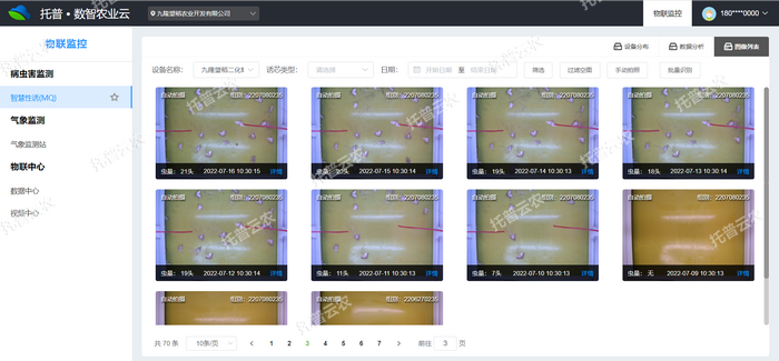 2、智能识别、自动计数:益特IT智慧性诱测报系统采用AI图像算法可识别草地贪夜蛾、粘虫、稻纵卷叶螟、斜纹夜蛾、二化螟等数十种害虫,并实现自动假树,平均识别率≥85%。